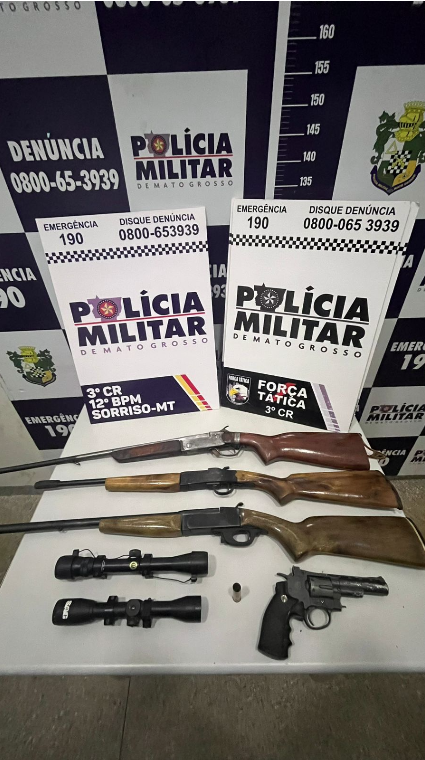 Durante a Operação Tolerância Zero, a Força Tática da Polícia Militar prendeu um homem, de 59 anos, por posse ilegal de armas de fogo, na noite desta quarta-feira (21), no bairro Pinheiro III, em Sorriso. A ação faz parte das operações intensificadas de combate à criminalidade e à circulação ilegal de armamentos.