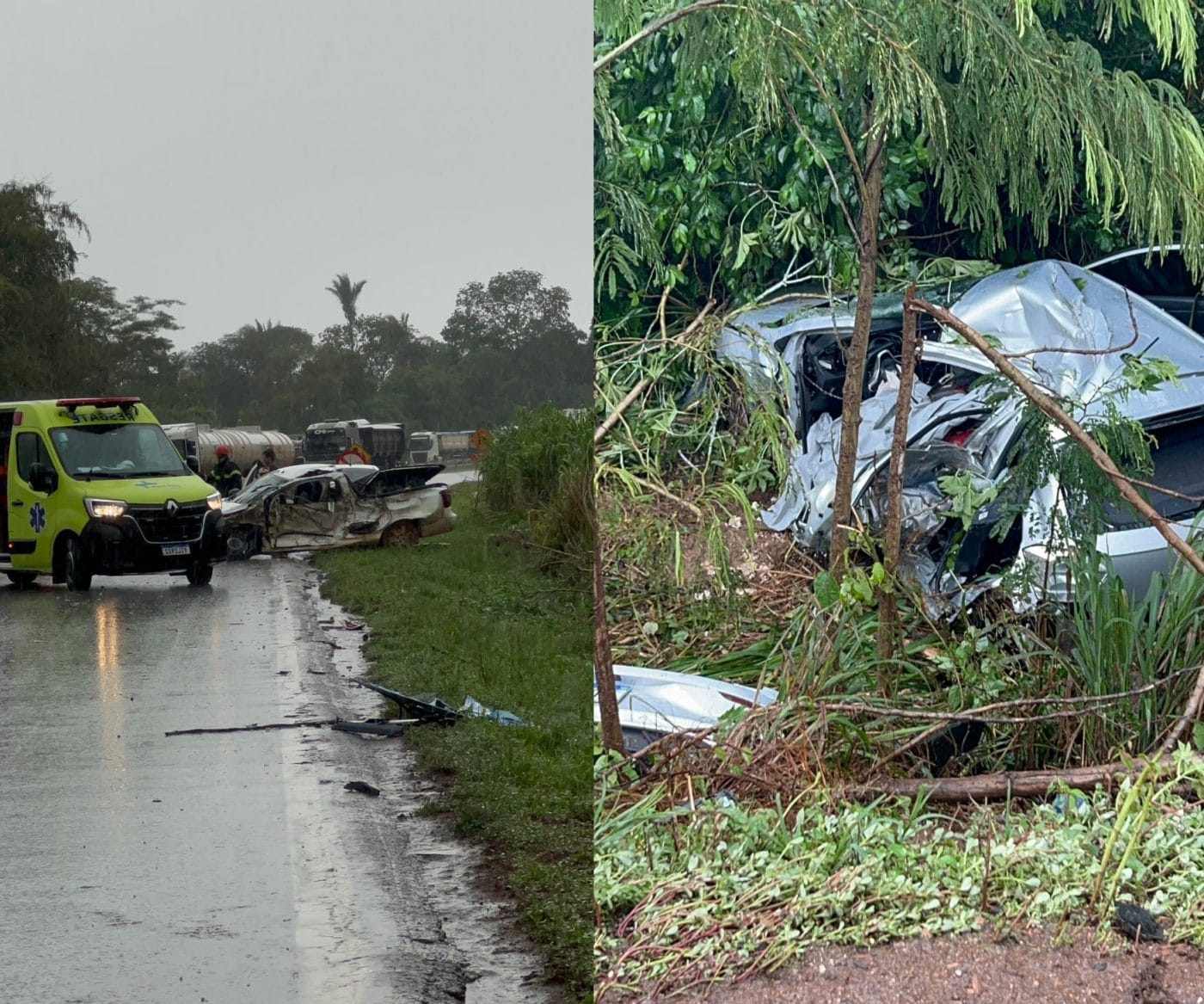 Após as batidas, o caminhão saiu da pista e parou ao colidir com a cerca de uma propriedade rural às margens da BR-364. Equipes do Corpo de Bombeiros atuaram no resgate das vítimas, na contenção de riscos e na segurança da área até a normalização da situação.