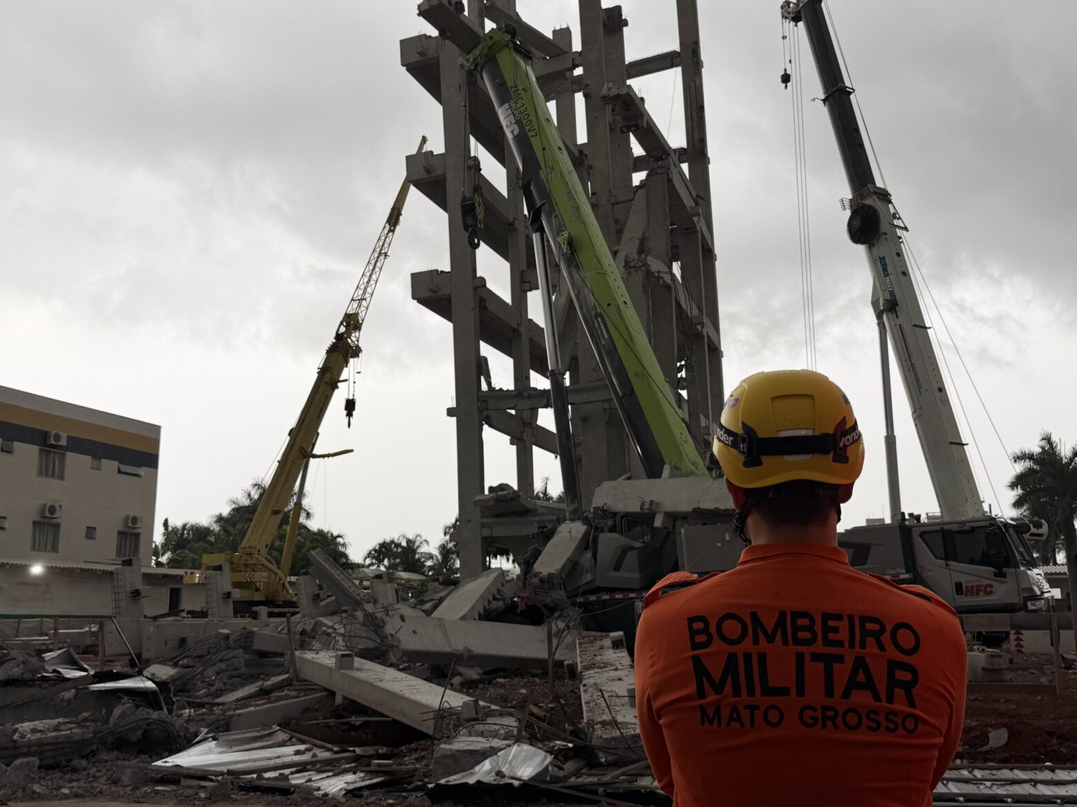 Uma ocorrência considerada incomum mobilizou o Corpo de Bombeiros na tarde deste sábado (17), após parte de uma estrutura de concreto pré-moldado desabar em uma obra de hotel localizada na Avenida Universitária, em Lucas do Rio Verde, nas imediações do Atacadão.